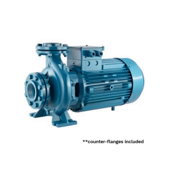 Cast iron pump casing, motor bracket and impeller. Stainless steel shaft. Mechanical seal with ceramic/graphite counterfaces. Flanged connection points DN80 & DN100 2236 PN10 standards. Thread type counter flanges UN12254.